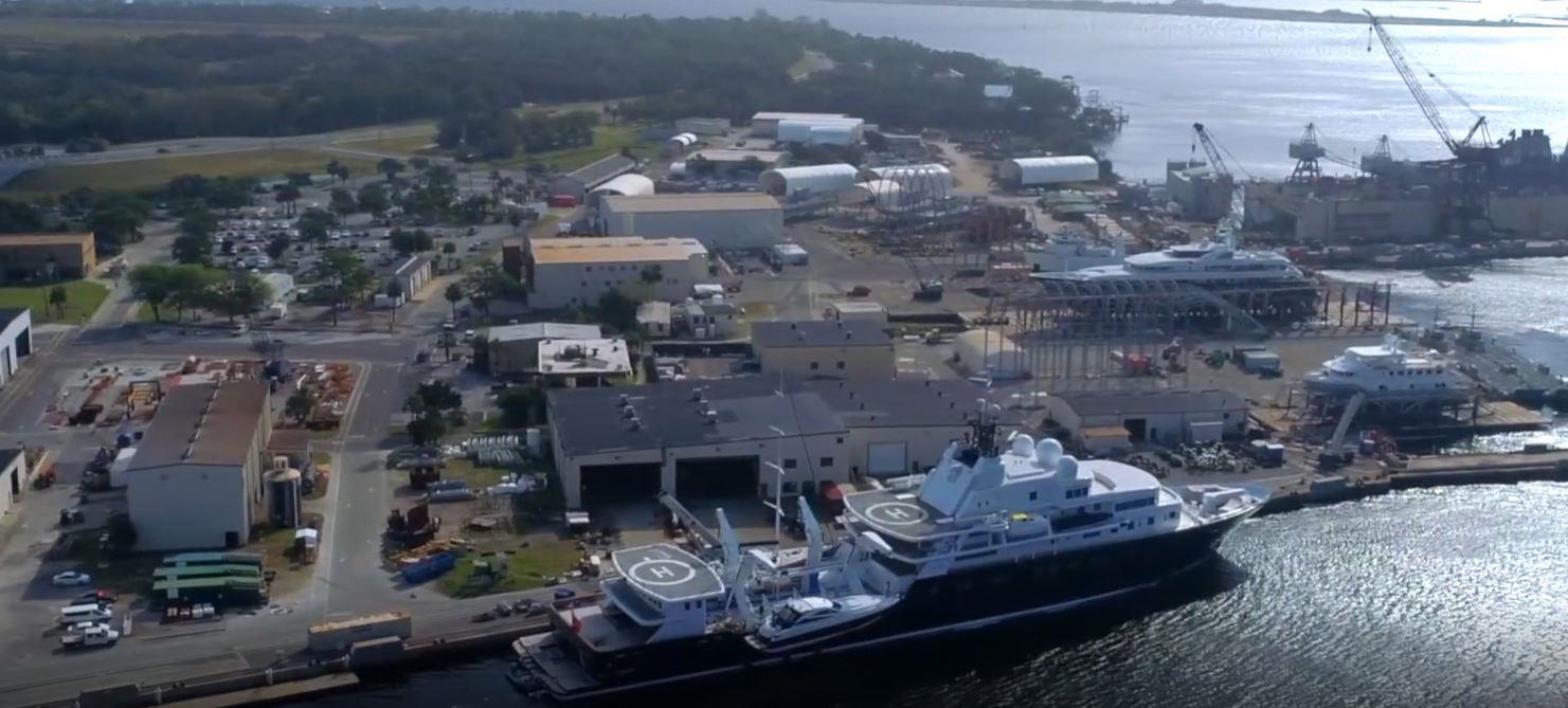two miles from the Atlantic Ocean, at the intersection of the St. Johns River and the Atlantic Intracoastal Waterway. A river depth of 41 feet provides customers with easy deep water access from both the Caribbean and the Atlantic. In Jacksonville, they specialize in mega-yacht repairs and refits, as well as commercial and U.S. Navy ship repairs and conversions, marine fabrication and industrial fabrication and assembly.