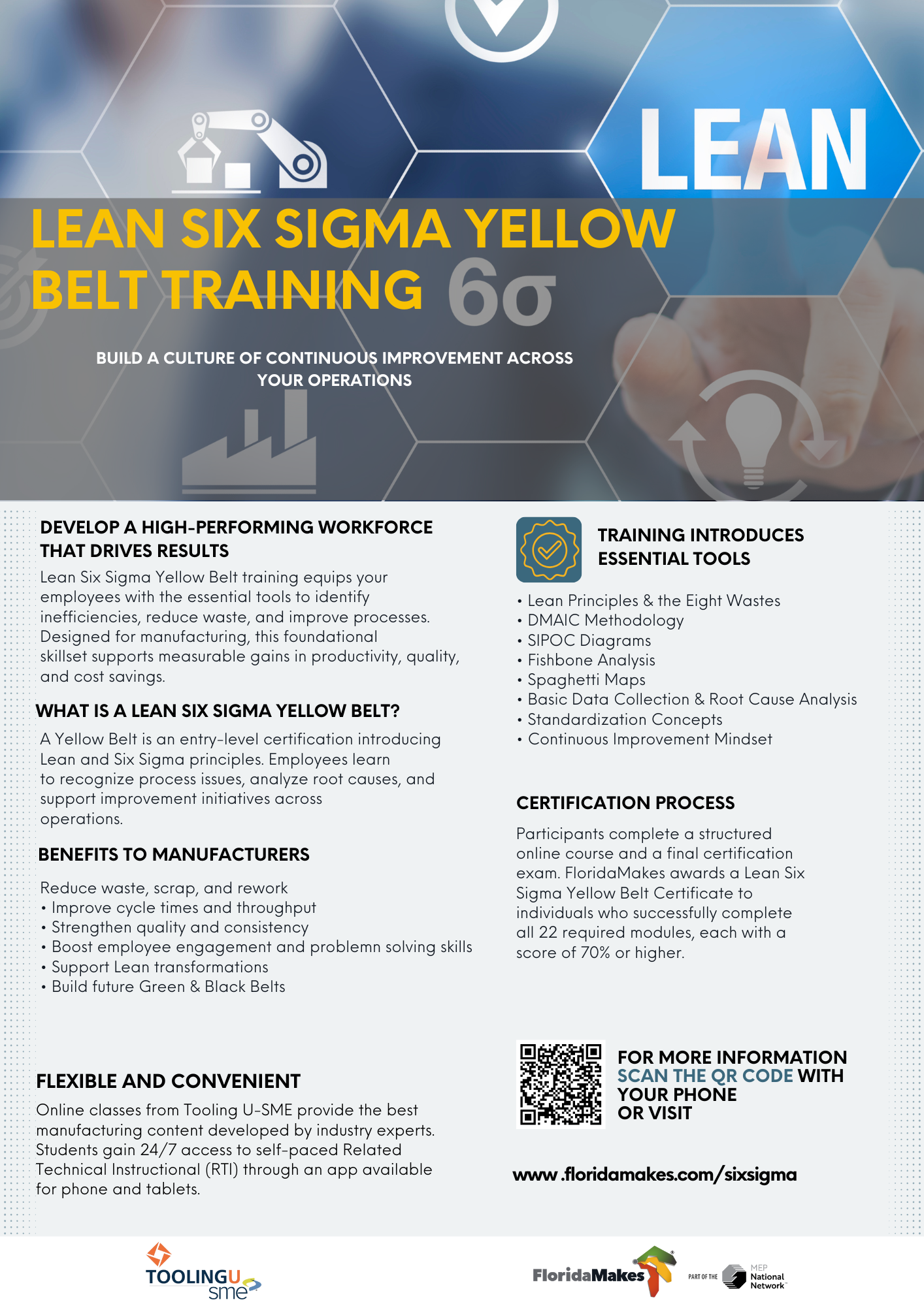 training equips employees with the foundational skills needed to recognize inefficiencies, solve problems, and support improvement projects that drive measurable results. For manufacturers facing production bottlenecks, rising costs, and workforce skill gaps, Yellow Belt training is an accessible and high-impact way to strengthen your team’s capabilities one improvement at a time.